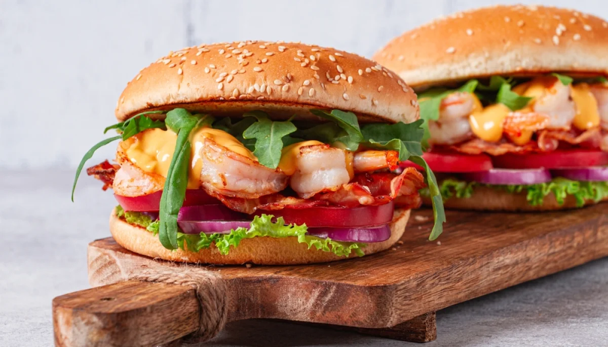 Savourez un burger aux crevettes croustillantes, généreux et gourmand, parfait pour un repas original et facile à préparer à la maison.