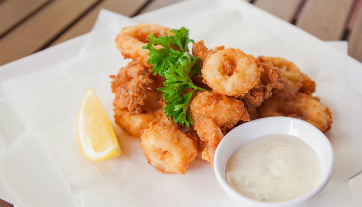 Savourez des calamars frits croustillants et dorés, parfaits pour une entrée gourmande ou un apéritif aux accents méditerranéens.