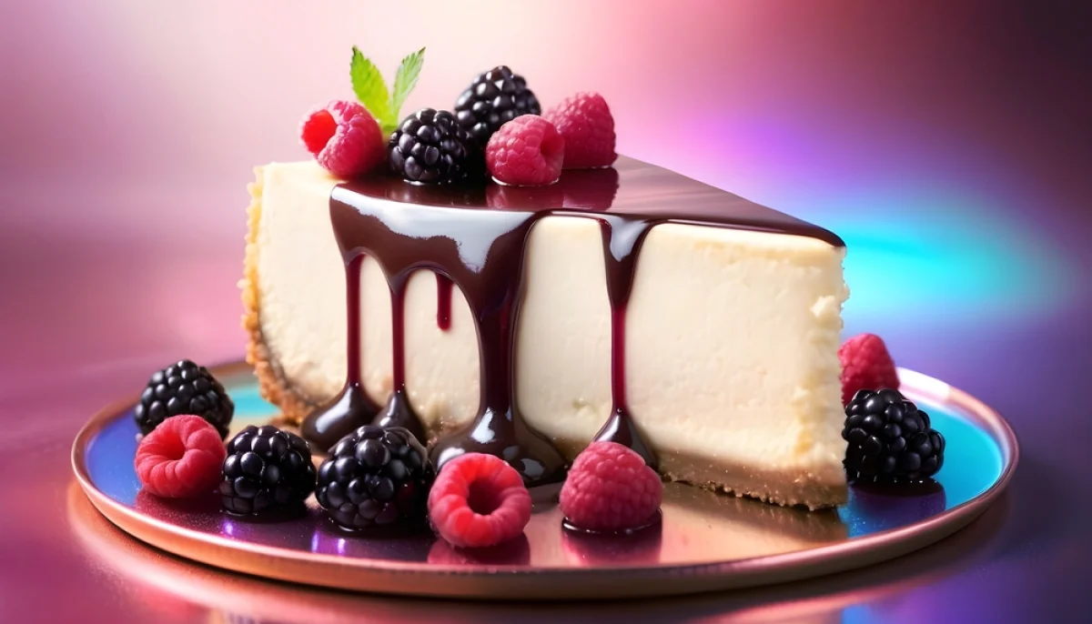 Savourez un cheesecake vanille ultra crémeux sublimé par un coulis de fruits rouges, parfait pour un dessert élégant et gourmand.