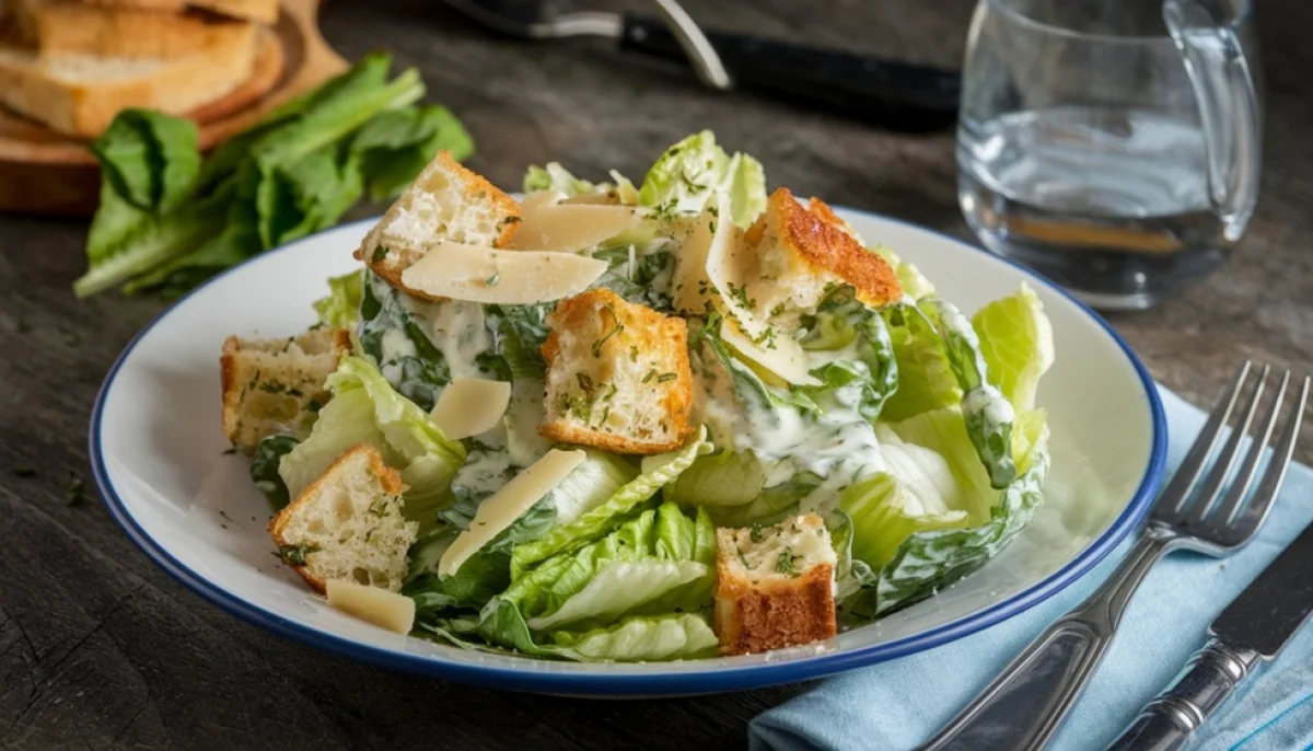Savourez la salade César classique, croquante et onctueuse, garnie de croûtons dorés, parmesan et sauce maison.