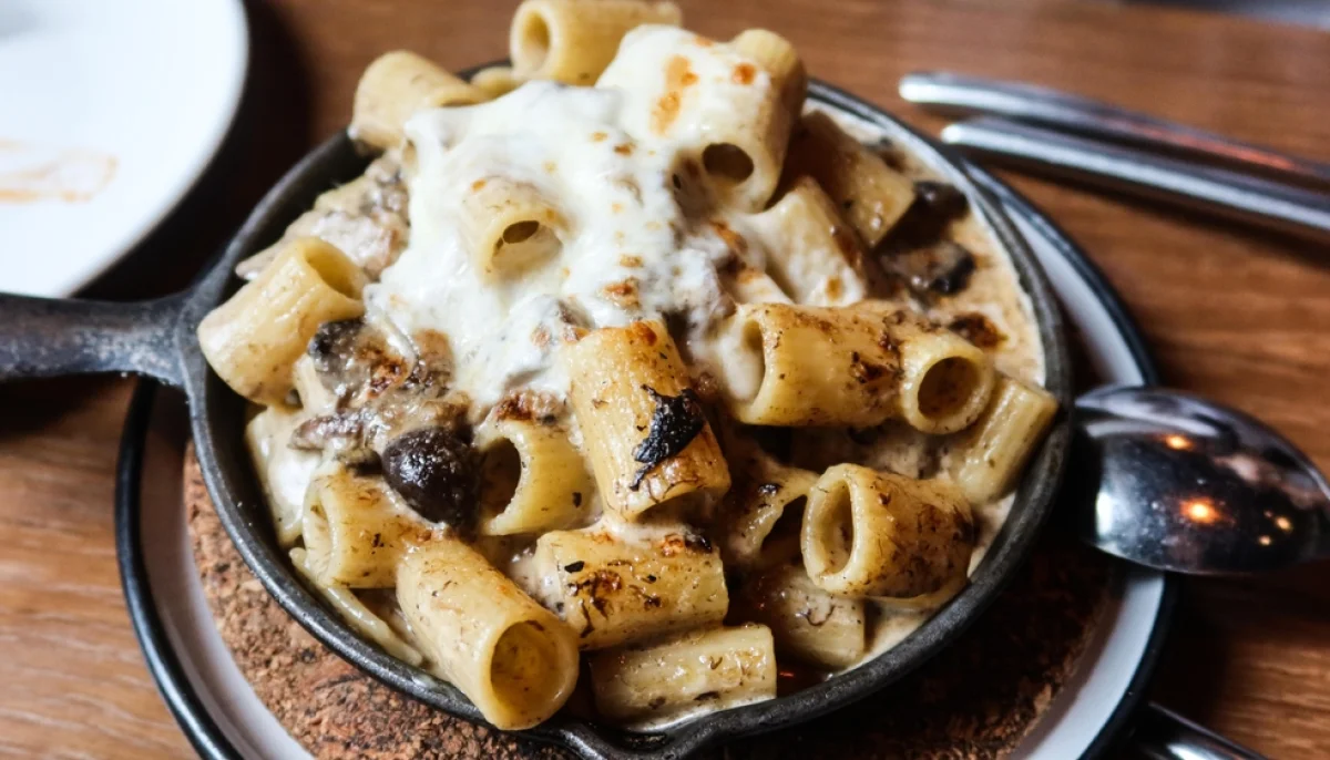 Savourez un plat de rigatoni gratinés aux champignons, crémeux et fondants, parfait pour un repas réconfortant et gourmand à partager.