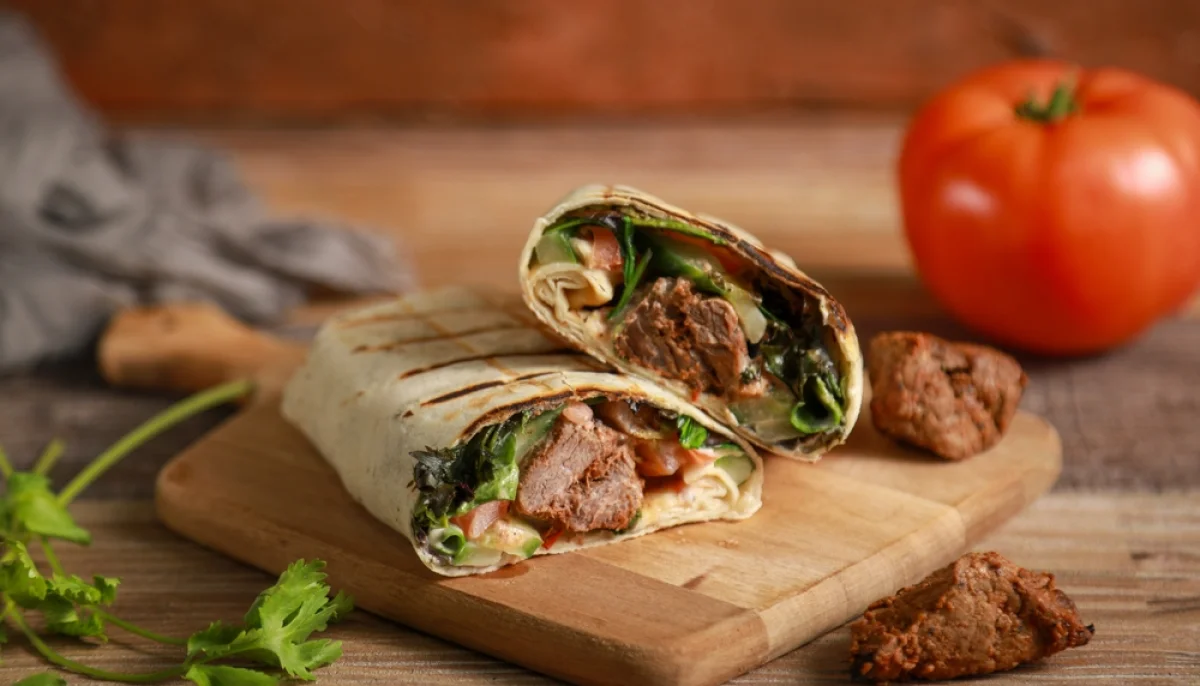 Savourez un shish kebab maison, viande grillée parfumée et légumes frais, enroulés dans un wrap moelleux.