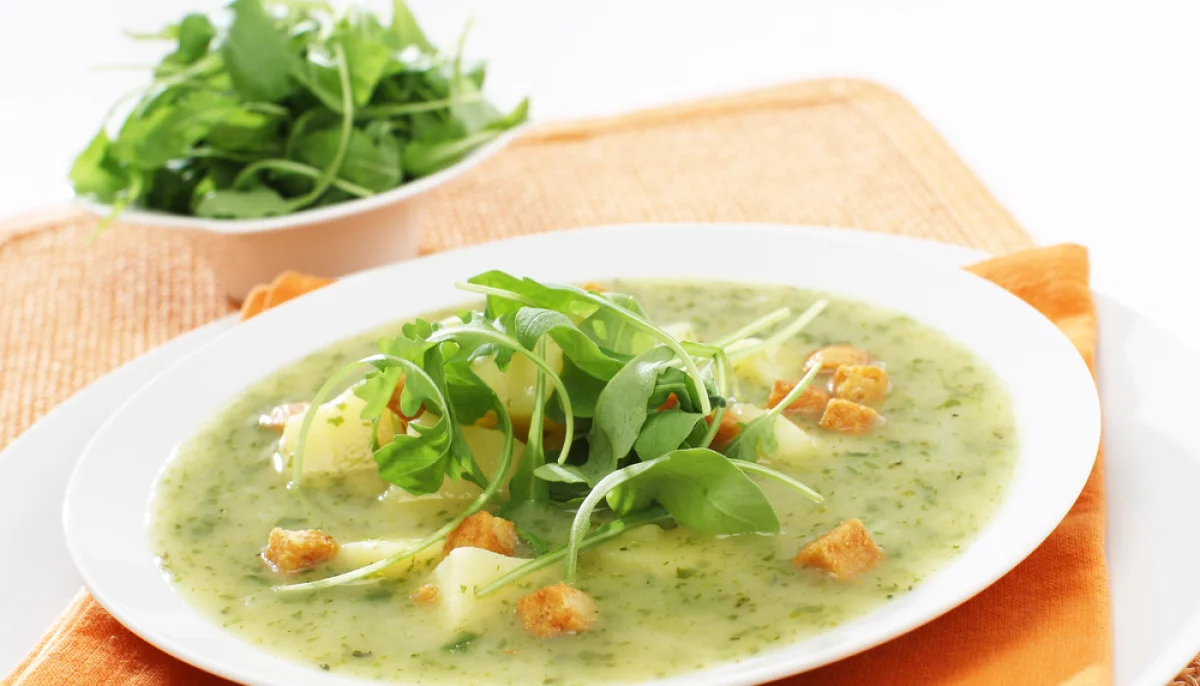 Savourez un velouté onctueux de courgettes à la roquette, frais, léger et parfait pour une entrée saine et gourmande.
