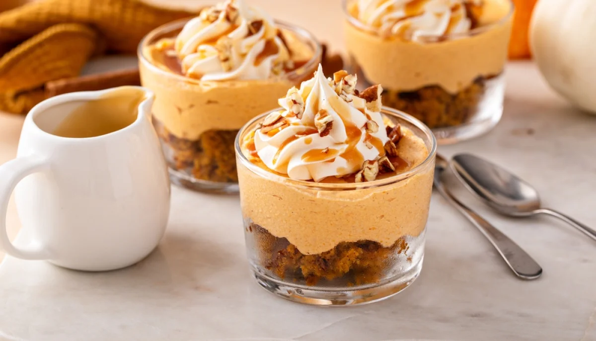 Savourez de dĂ©licieuses verrines Ă la citrouille, onctueuses et Ă©picĂ©es, parfaites pour un dessert gourmand et original aux saveurs dâautomne.